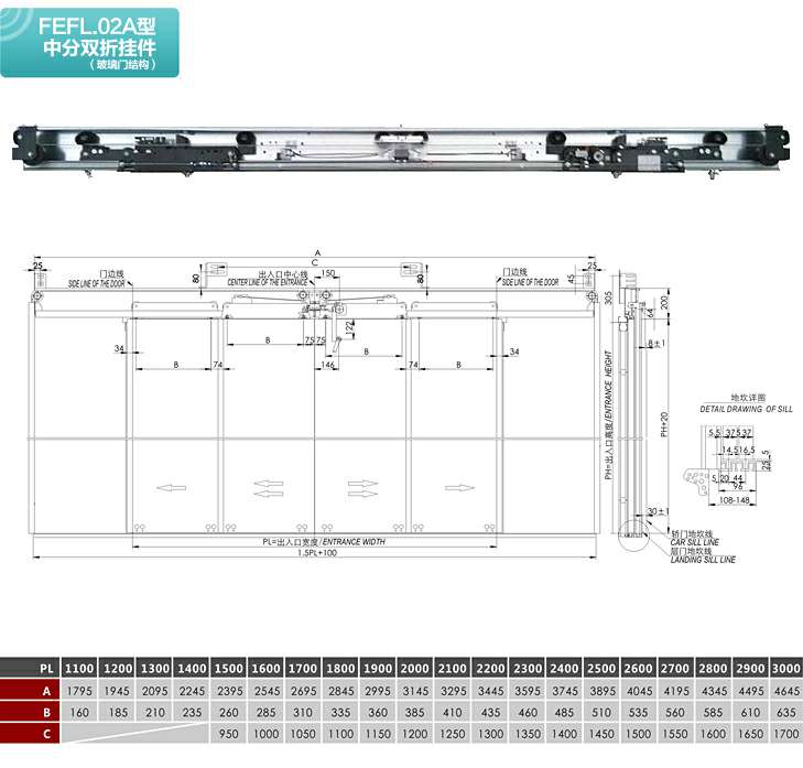 FEFL.02A型中分双折层门装置(玻璃门结构)